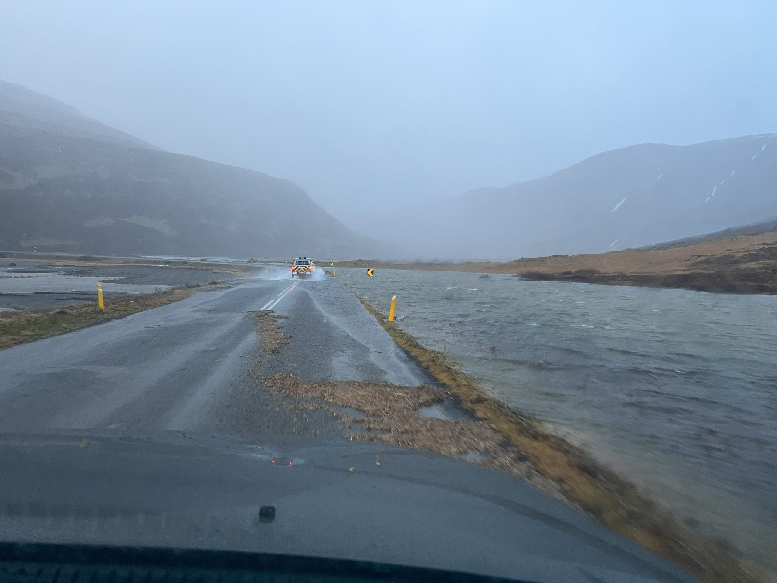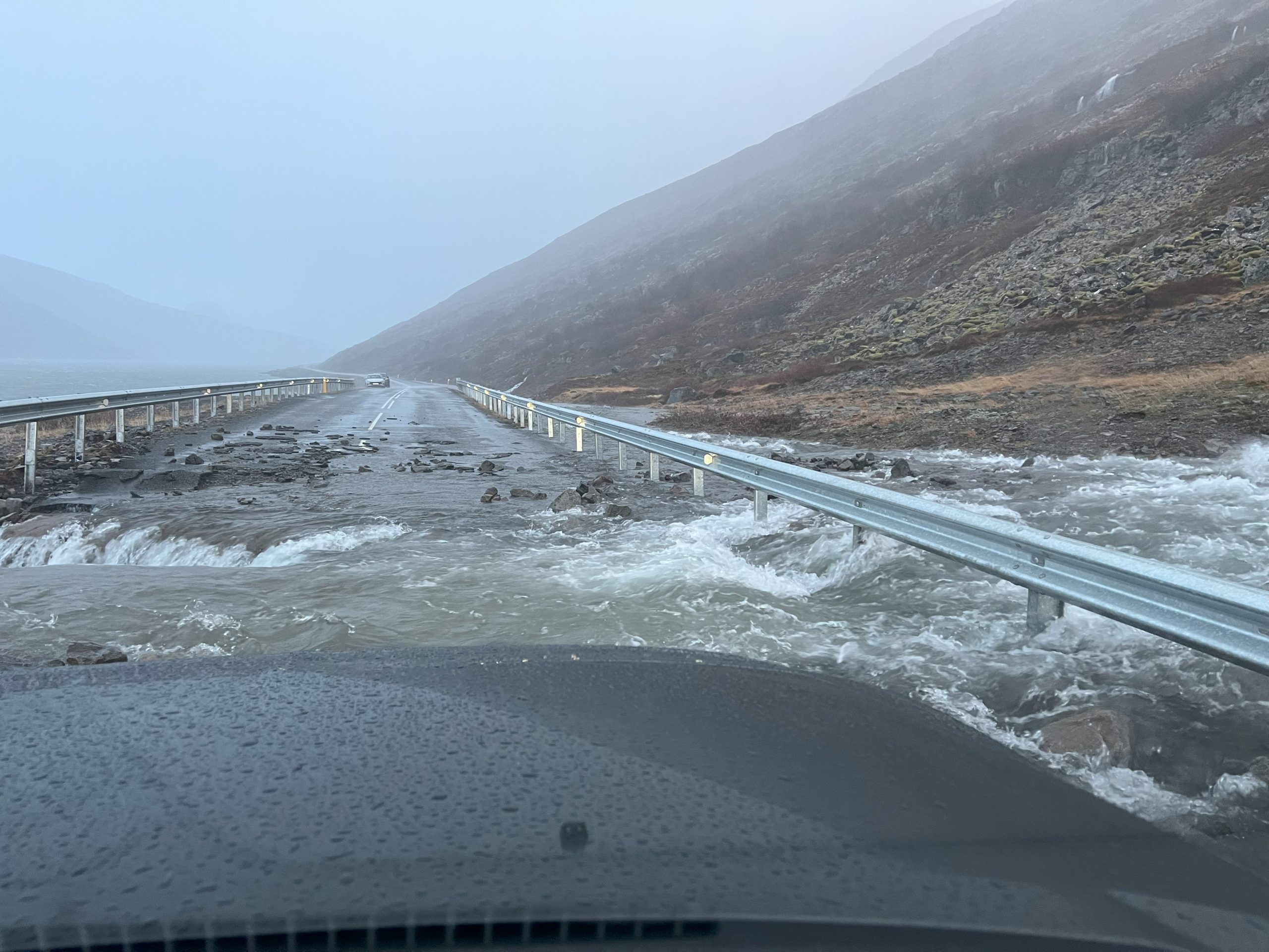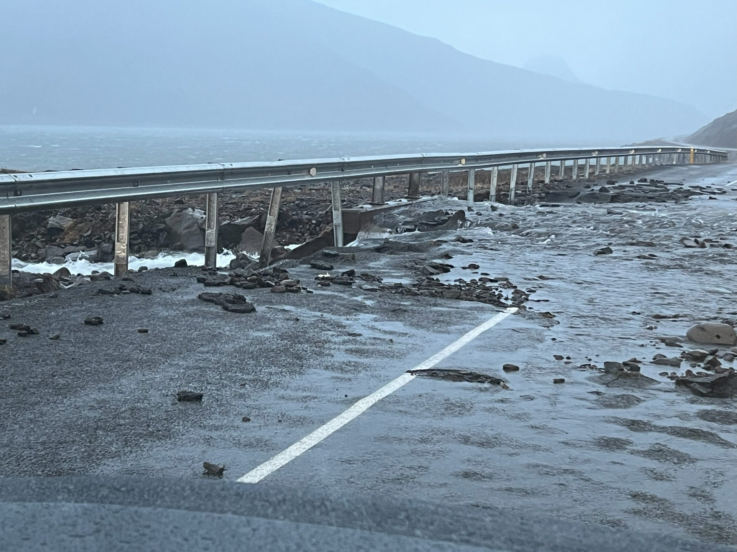 Um klukkan 10 lokaðist vegur um Langadalsströnd eftir að hann fór í sundur en einnig hafði vegurinn um Trostansfjörð farið í sundur. Lokunarhlið var sett upp á Dynjandisheiði til að loka fyrir umferð á leið til Bíldudals á svipuðum tíma.
