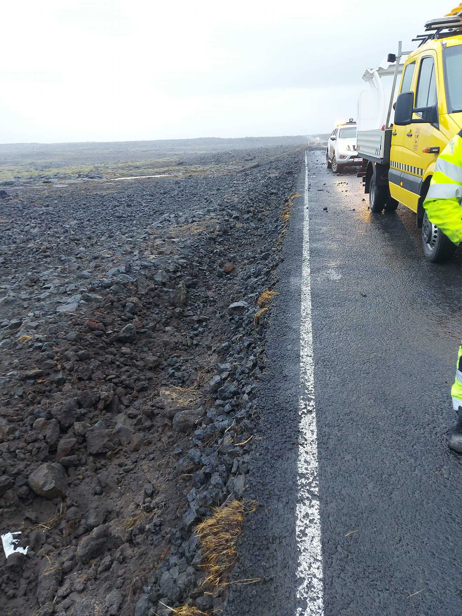 Tjón varð ekki aðeins á höfnum og sjóvarnargörðum heldur fékk Nesvegur (425) sem liggur frá Grindavík að Reykjanesvita að kenna á því. „Ég hef aldrei séð annað eins brim. Þetta var hálf óhugnanlegt,“ segir Valgarður Guðmundsson eftirlitsmaður á Suðursvæði Vegagerðarinnar. Á um 300 metra kafla vegarins, rétt vestan við Brimketilinn, flettist klæðing af veginum auk þess sem grjót lá á honum. „Þetta hefur líklega gerst á fimmtudagsmorgun, í morgunflóðinu,“ lýsir Valgarður en fyrir utan skemmdir á klæðingunni grófst töluvert úr vegöxlinni fjær sjónum. „Þetta var stór skurður, um metersdjúpur.“