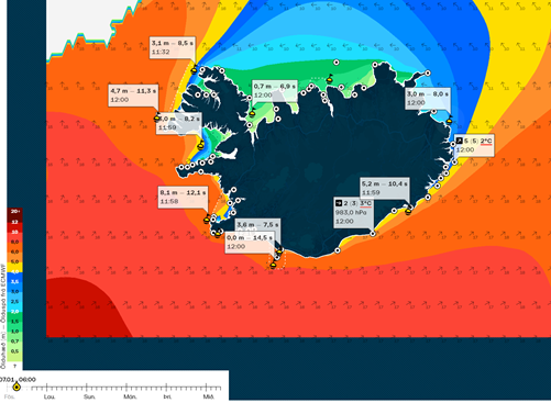 Mjög kröftug lægð gekk yfir landið sunnanverðu í vikunni og skapaði krefjandi veður- og sjávaraðstæður. Lægðin var djúp og sjávarstaða há, sem leiddi til nokkurrar hættu fyrir bæði strandlínu og innviði á svæðinu. Starfsmenn Vegagerðarinnar fylgdust náið með aðdraganda veðursins og veittu íbúum og ferðamönnum mikilvægar upplýsingar um sjávarstöðu, ölduhæð og hugsanlega áhættu á vefnum sjolag.is, til að tryggja öryggi og undirbúa viðbrögð ef aðstæður versnuðu.