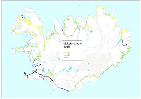 Innsveitarmokstur fékk einnig aukna tíðni t.d. uppsveitir Árnessýslu og Borgarfjarðar.