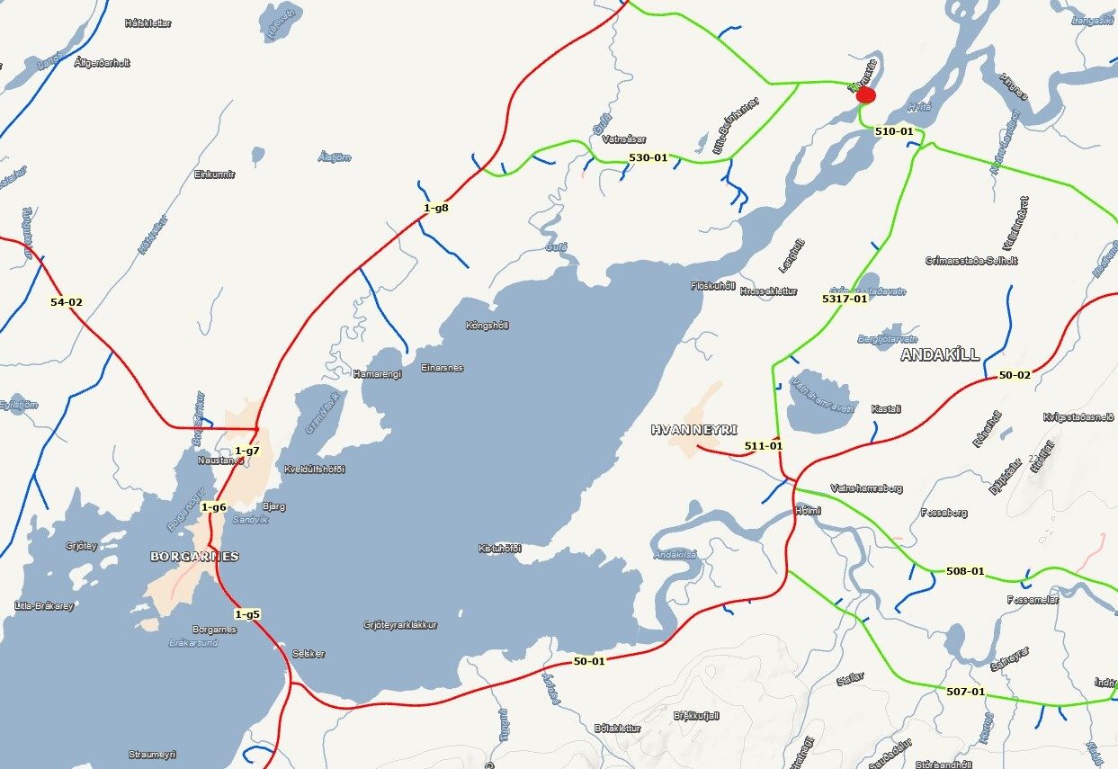 Andakílsá | 1935 | 44 m | Bitabrú | Járnbent steypa | Járnbent steypa | Járnbent steypa |