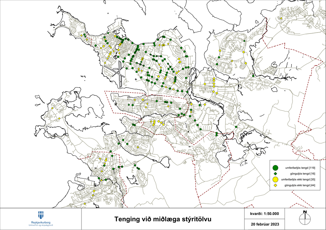 Rúmlega helmingur allra umferðarljósa er tengdur við miðlæga stýritölvu umferðarljósa (MSU), sem er af gerðinni Sitraffic Scala og er markmiðið að tengja öll umferðarljós við MSU.