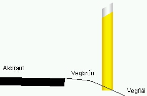 Stikur skulu vera gular og vel sýnilegar a.m.k. í 500 m fjarlægð