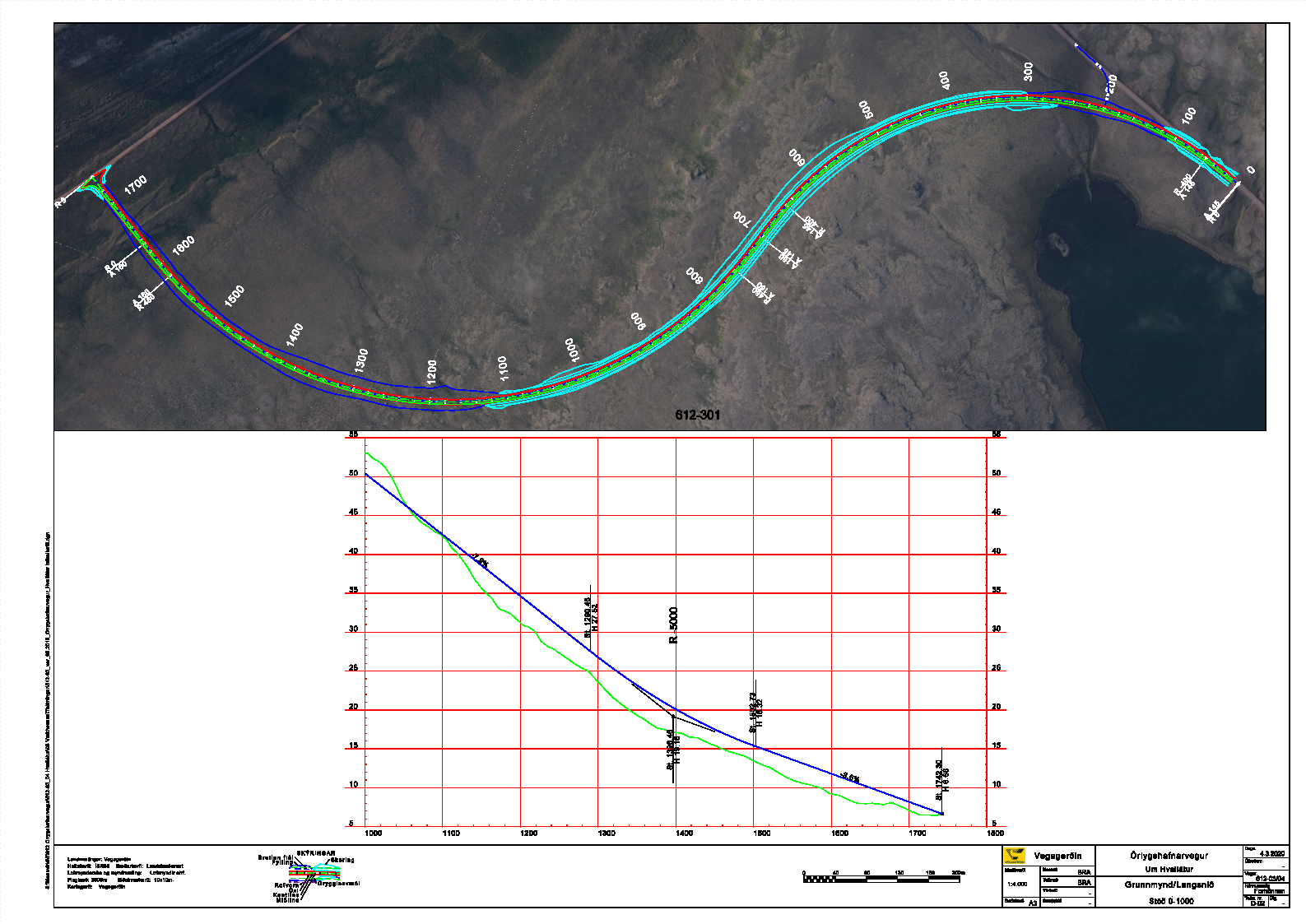 Áætluð efnisþörf í framkvæmdina er um 33.750 þús. m3. Efnið mun fást úr skeringum.